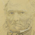 DESCRIPTION: Depicted is a three-quarter view of an older gentleman with serine expression, slightly balding with full muttonchops, wearing a fashionable neck-tie and suit.