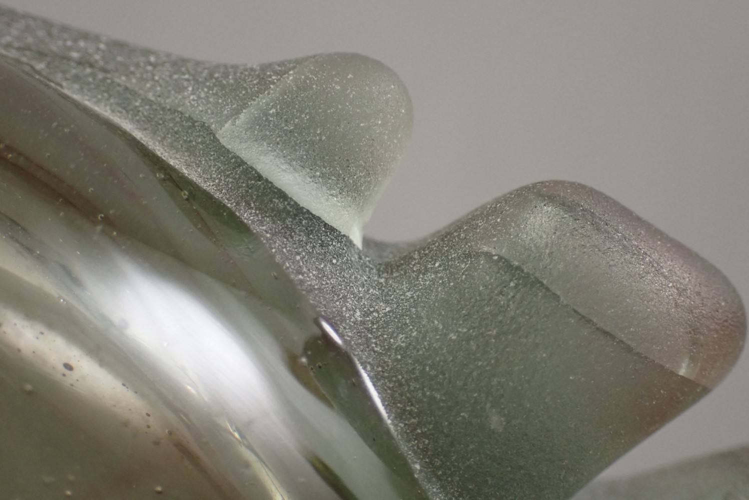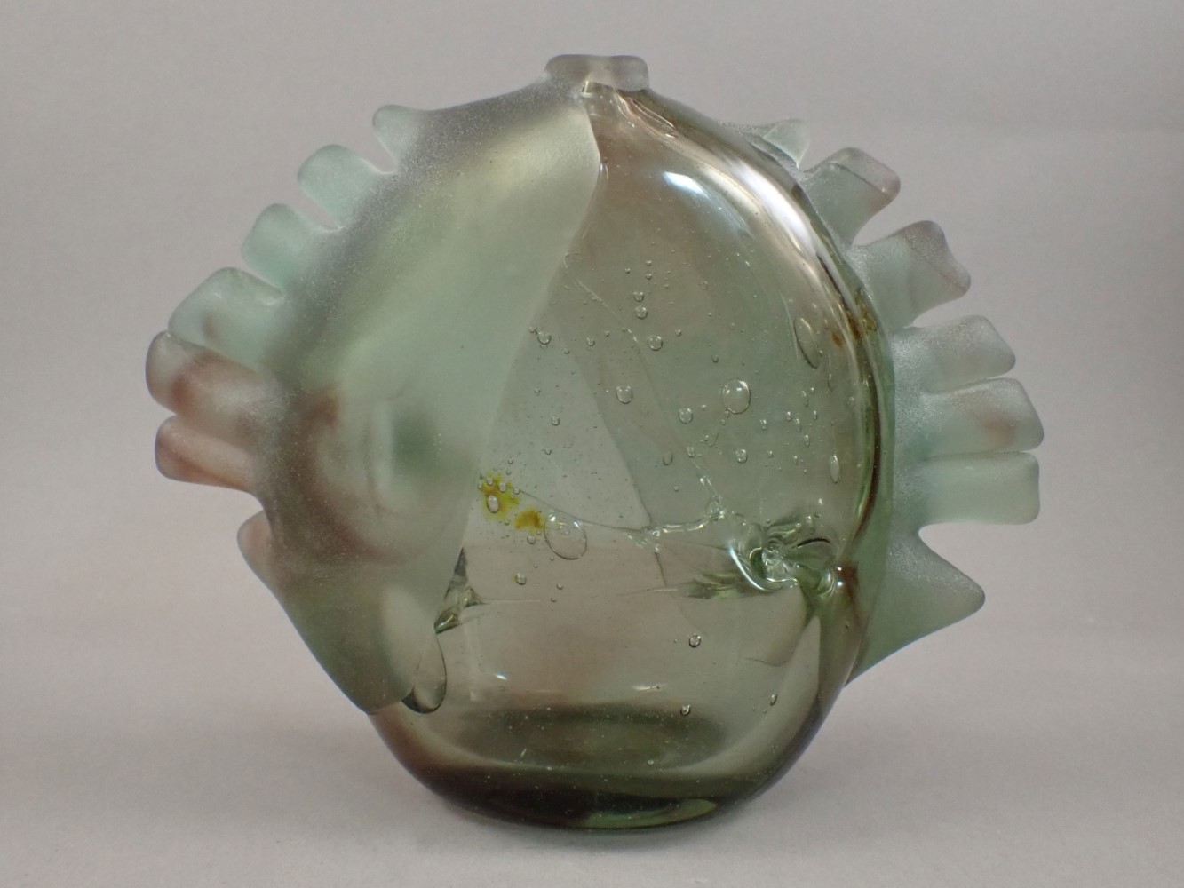 For Accuracy: light shelf wear, as expected on any vintage vase. There are a couple of internal cracks to the applied frills – note these are not damage but result of the process. It is an unusual and desirable Robinson vase. See photographs.
