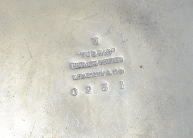 Markings: impressed to base, “H” / “TUDRIC” / “ENGLISH PEWTER” / “LIBERTY & CO” / “0231”