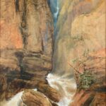 Notes: The Norwich School often found its dedication to nature socially at odds with the contrivances of the picturesque but whatever one’s preference the sublimity of Dungeon Ghyll, Cumberland cannot be denied. Here Henry Bright has offered this to the viewer in a careful composition that emphasizes the magnitude of the situation through the use of light, shadow, perspective, motion and scale. Masterfully executed the dramatic location is presented in an equally large format, 29 ½” high x 21 ½” wide.