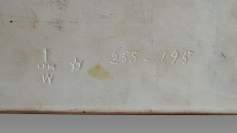 Markings: Inscribed verso top left, “No. 5—-GIIe”; Impressed verso, lower center, with “Scepter / KPM / W”, circle with sticks, inscribed into porcelain with plate size, “255-195”.