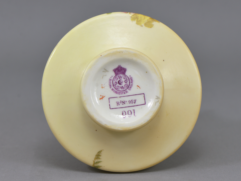 Markings: puce 1894 Royal Worcester backstamp / Rd No. 957 / 991; “AL” gilder’s monogram; impressed year and month