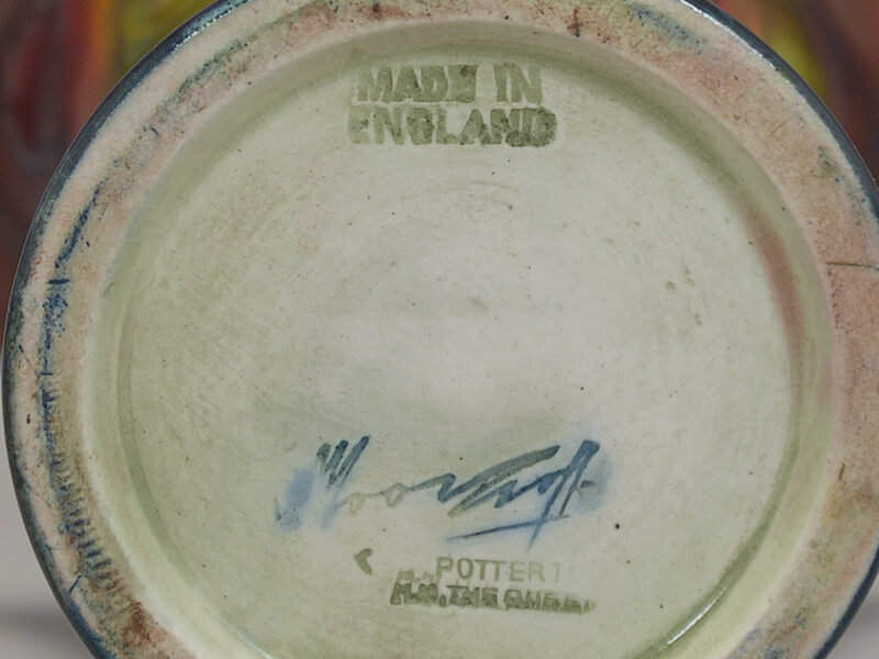 Markings: impressed on base, ‘MADE IN’ / ‘ENGLAND’ / ‘WMoorcroft’ / ‘POTTER TO’ / ‘H.M. THE QUEEN’