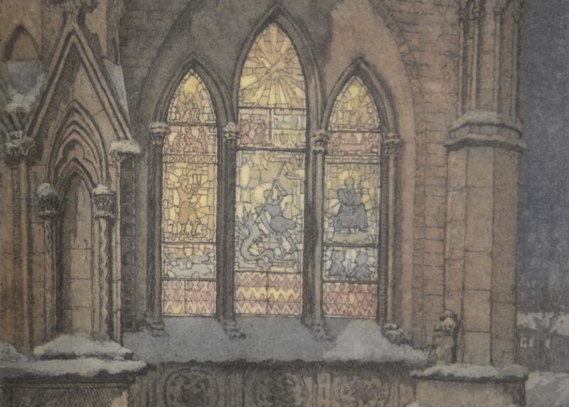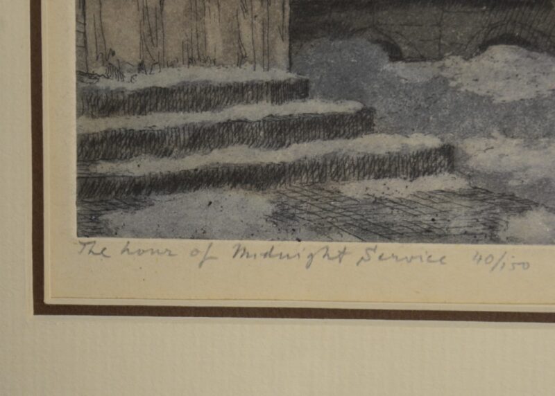 Artist Biography: HORNYANSKY, Nicholas (Hungarian, Canadian, 1896-1965) ARCA, OSA, CPE, FIAL, ACPS. Born in Budapest, Hungary he worked as a colour mixer in the printing office of his father by the age of 12. STUDIED: Academy of Fine Arts, Budapest, under Prof. Ballo (portrait painting) and Prof. Pasteiner (aesthetics); Graduate Studies in Vienna, Munich, Antwerp and Paris; Simultaneous Colour aquating with Sagnelonge, Etching under Aba-Novak; edition studio in Brussels. INFLUENCES: Van Eyck; Breughel (The Younger); El Greco; Diego Rivera. WORKED: Belgium as an accomplished portrait painter; As part of the School of Hens with Franz Hens doing landscape painting; Worked with Franz henz. EXHIBITED: Grand Salon of Budapest (at age 16); London as a Portrait Painter; teacher Ontario College of Art (1945-1958); Kitchener Waterloo Art Gallery (1967); Lionel Clarke Galleries Toronto (1967); The Tom Thomson Memorial Gallery and Museum of Fine Art, Owen Sound, Ontario (1968); California Printmakers; Philadelphia Society of Etchers; Northwest Printmakers (Seattle); American Academy of Design; Prairie Printmakers (Kansas); Pennsylvania Academy of Fine Art; Society of American Etchers (New York); Souther Printmakers (Mount Airy); and the American Colour Print Society of Philadelphia.. COLLECTIONS: National Gallery of Canada; Royal Ontario Museum; National Print Collection, Library of Congress; New Mexico Museum (Santa Fe); Pennsylvania Museum of Art (Philadelphia); Musee Plantyn (Antqerp); Hart House, U of T; The John Ross Robertson Collection, Toronto Public Library. Museum of Fine Arts, Antwerp; Museum Modene, Ghent, Antwerp; Dowage Queen Elizabeth, Belgium; Govenment Collection, London, England; Rothschild Collection, Trink Castle; Exhibited: Toronto (1929); Royal Canadian Academy; Ontario Society of Artists; Society of Canadian Painter-Etchers and Engravers (1939 onwards); ASSOCIATIONS: Associate Royal Canadian Academy of Arts (1943); Society of Canadian Painter-Etchers & Engravers (Pres. 194301958); American Color Print Society (Philadelphia), and the Ontario Society of Artists, Life Fellow, International Instutute of Arts and Letters. AWARDS: “Fifty Prints Of the Year,” American Federation of Art (1932, 1933); The G. A. Reid Silver Memorial Award (1955); Sterling Trust’s First Purchase Award (CPE); E. A. Klein First Purchase Award (Philadelphia)