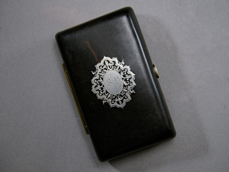 SUMMARY: Napoleon III French silver inlaid tortoiseshell cigarette case, circa 1850-1870.