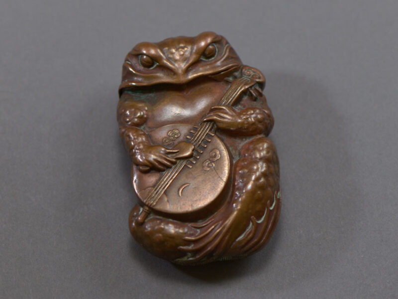 SOLD – Match Safe – Toad Playing Gekkin, Bronze